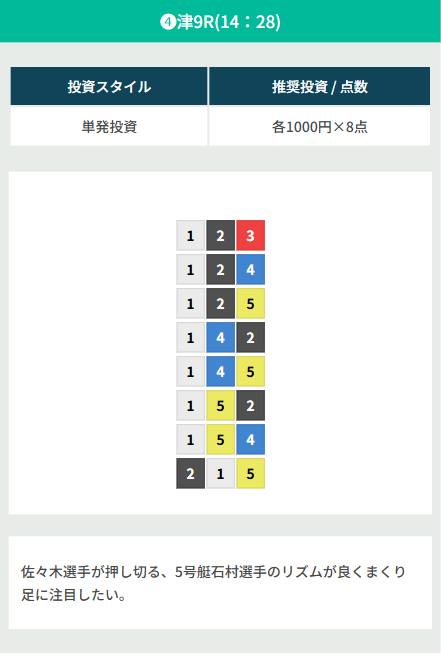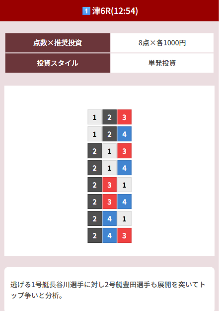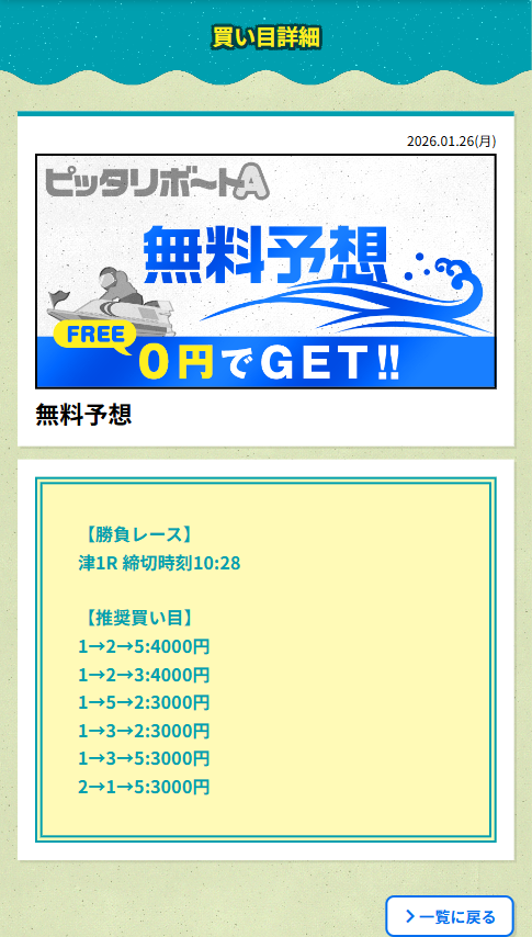 競艇予想サイト独自の津競艇の無料予想も公開しています。