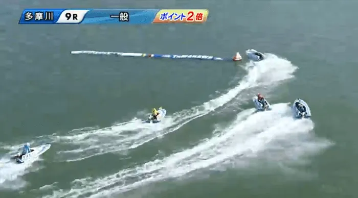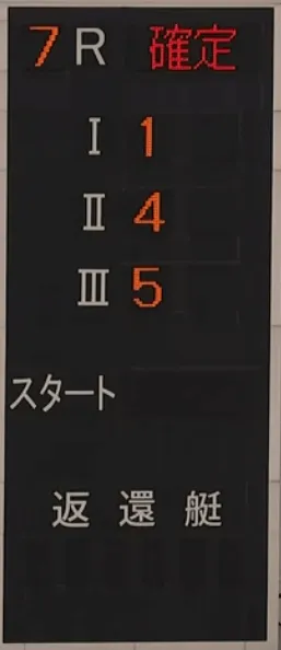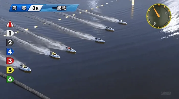 1周目2Mではほぼ横並びだった2・3・4・5号艇ですが、2周目1Mで4号艇の原が抜け出し、「1-4」の形から3着が2・3・5号艇に絞られる展開に。
