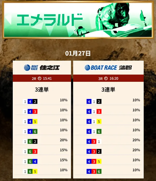 有料予想 初回限定・不的中補償あり。好調なのは「エメラルド」