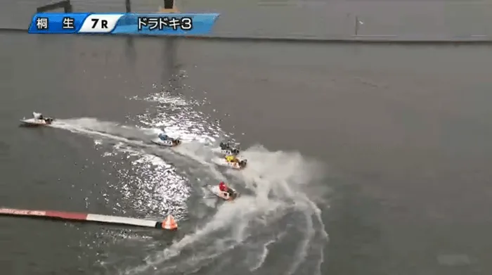 1周目1Mでは3号艇の松竹が「まくり」ではなく「差し」を決めてトップに!1号艇の丹下と1着争いをはじめ、これで「1-3」「3-1」の形は確定的。