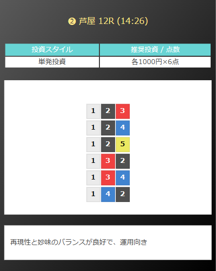 競艇予想サイト独自の芦屋競艇の無料予想も公開しています。