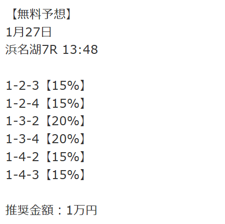 浜名湖競艇で今日1月27日(火)行われる競艇レースの無料予想を掲載しております。