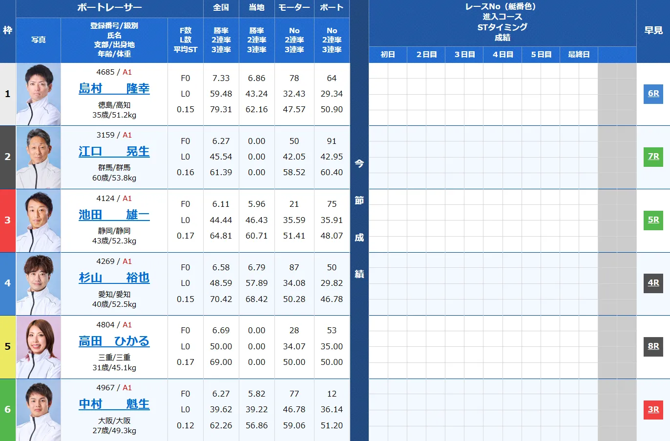 デイリーDRの1号艇に指名されたのは島村隆幸!イン戦では9連勝とここは人気が集中しそう。