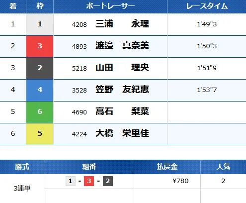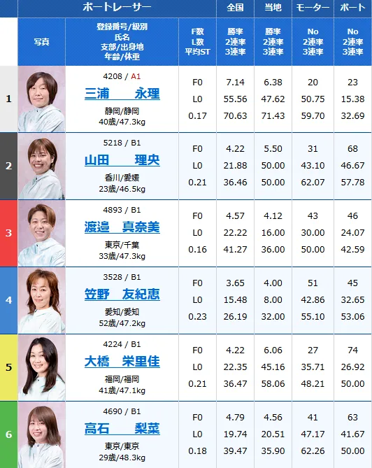 - 4号艇:笠野友紀恵(B1級・愛知)