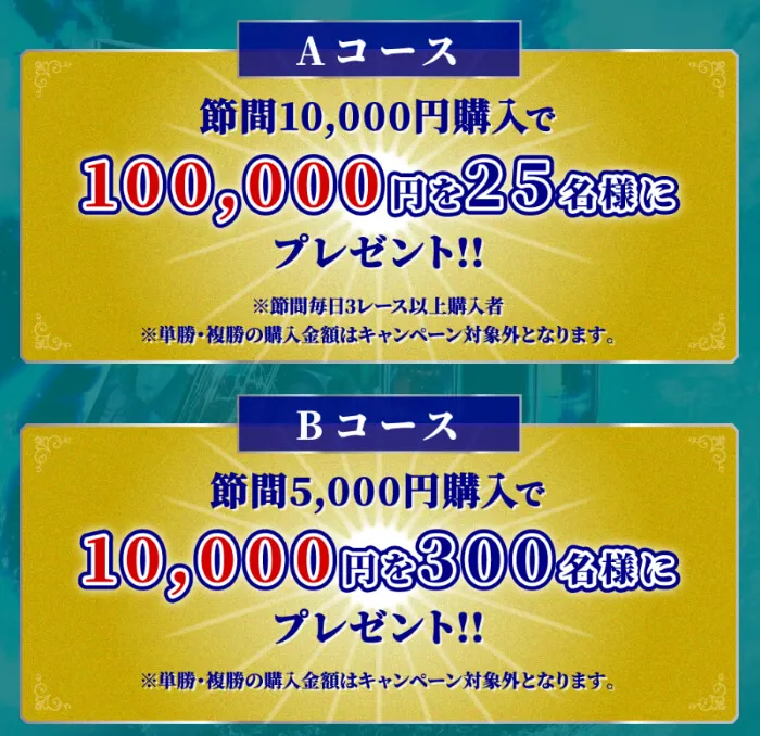 Aコースならば節間10000円以上、Bコースならば節間5000円以上の舟券購入がキャンペーン参加条件!
