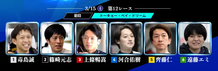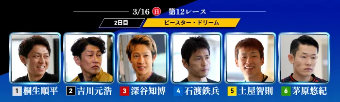 1戦目のドリーム戦では1号艇に毒島誠が配置!
