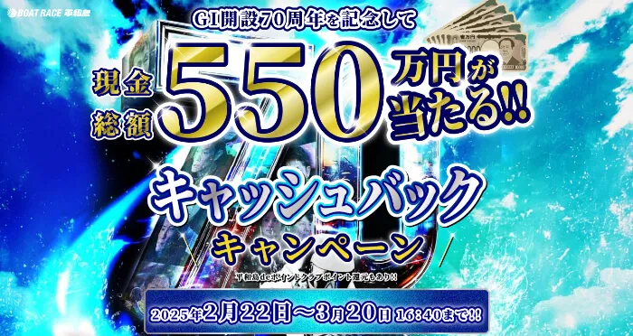 なんと今回の第70回トーキョーベイカップでは、「550万円キャッシュバックキャンペーン」が開催されるとのこと!