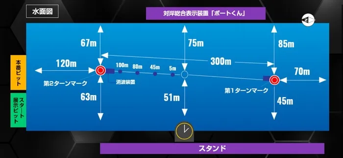 住之江はターンマークの振りが小さく、1号艇はスタート後に真っ直ぐ1マークへ向かえる構造。無理に攻める必要がなく、「スタートを決めて握って回るだけで勝負になる」水面と言えます!