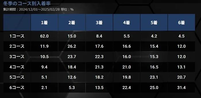 ボートレース住之江冬場のイン勝率は62%!