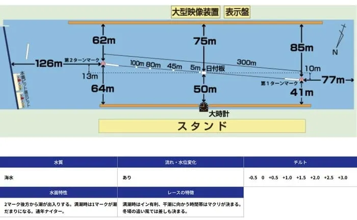 また、若松はナイター開催という点も重要です。夜になると風向きが変わりやすく、潮と風が重なった時には、スタート隊形や1マークの攻防が非常に激しくなる印象です。