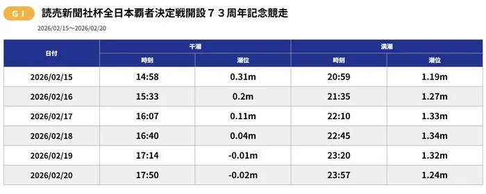 当日の潮見表を確認すると、満潮時刻は12レース付近。そのため、基本的にはイン逃げ信頼で舟券を組み立てるのが無難でしょう!