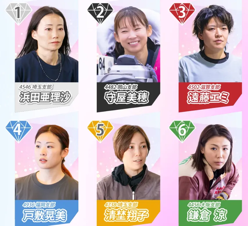 選出期間中に、全国24ヵ所の各ボートレース場で開催された競走の中から、最も速いレースタイムを記録した女子レーサー24名が選ばれ、優先出場権を獲得します!この枠はまさにこの大会を象徴する選考方法で、純粋な速さが評価されるポイントです!