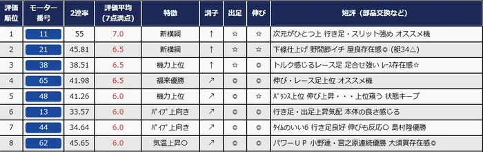 元長崎支部のレーサーで山崎康弘さんが監修したモーター短評から一部ピックアップしてご紹介していきます!