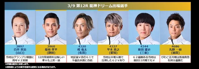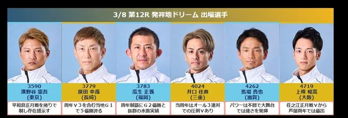 開催初日&2日目12Rドリーム戦の選手を紹介!