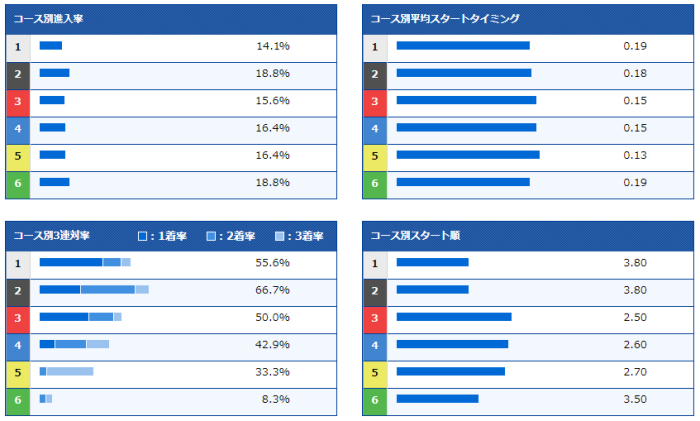 得意なコースとしては3コースがあげられ、実際レースでも3コースからのまくりで決まる場面も。