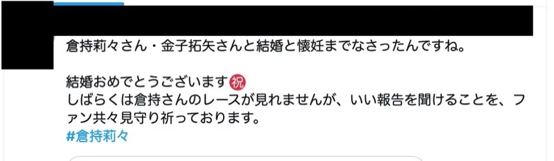 まずは、倉持莉々選手の結婚・妊娠を素直に喜ぶファン。