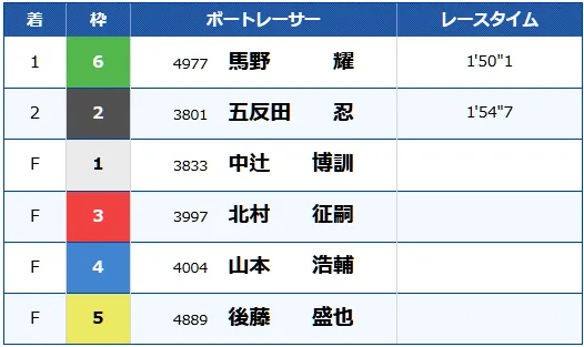 生き残った馬野がまさかのひとり勝ちで優出を決めるという、前代未聞のレースとなりました。