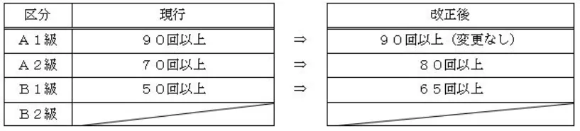 | A1級 | 90回以上 | 90回以上(変更なし) |