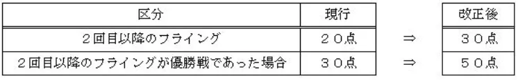 | 2回目以降のフライング | 20点 | 30点 |