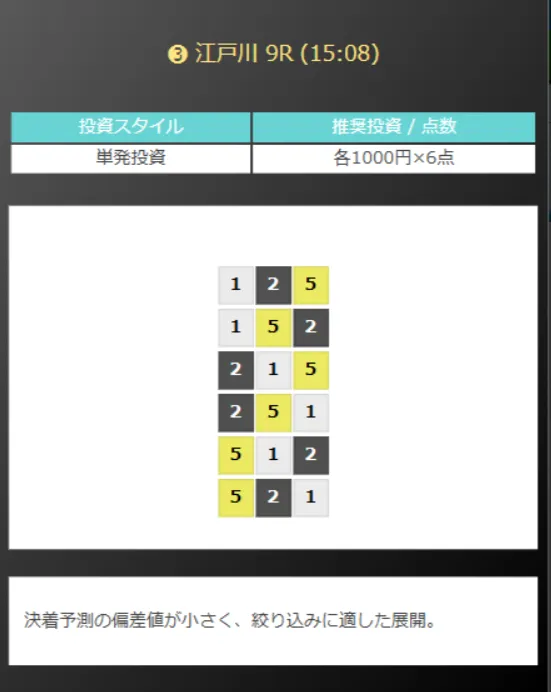 提示された買い目は以上の4点。