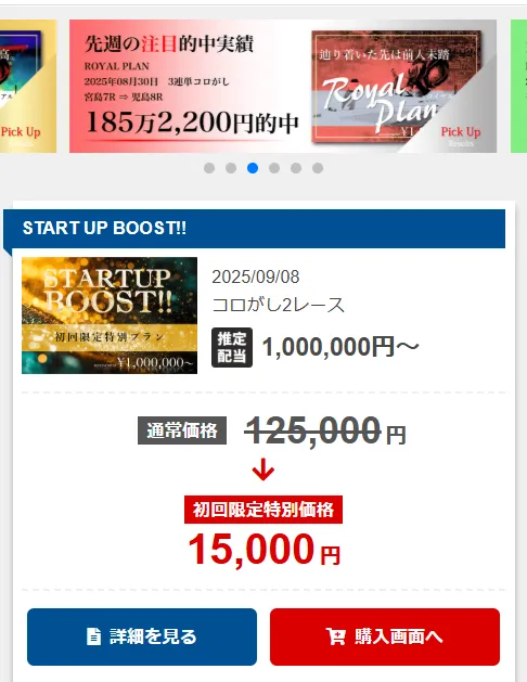 レース情報やデータ分析の解説などはなく、「ただ予想を売っているだけ」という印象が強いです。