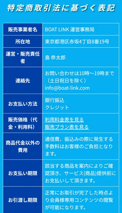 - 販売事業者名:BOAT LINK運営事務局