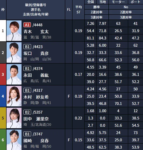 - 1号艇:青木玄太(A1級・滋賀)