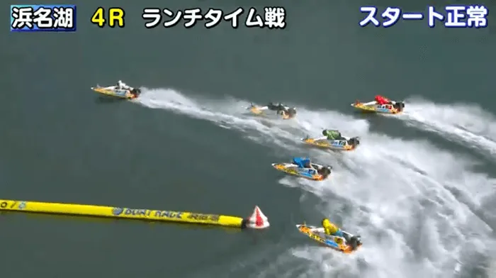 レースは枠なりで始まり、1周目1Mでは1号艇の青木が予想通りにトップ、残りは5号艇の田中が遅れましたが、他は横一線という状態になりました。
