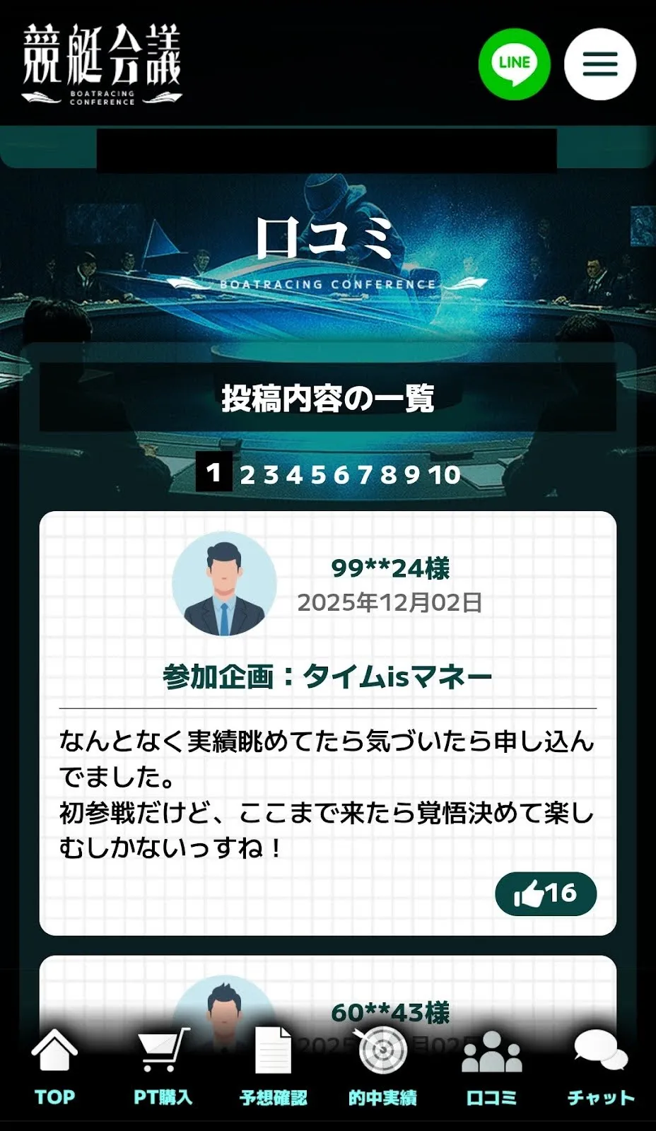 競艇会議には、2025年11月28日から毎日7件前後の口コミが投稿されているようで、口コミページから一覧で確認できます。
