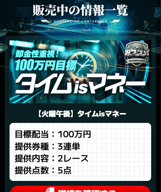 | タイムisマネー | 3連単 | 2レース | 5点 | 100万円 | 350PT |