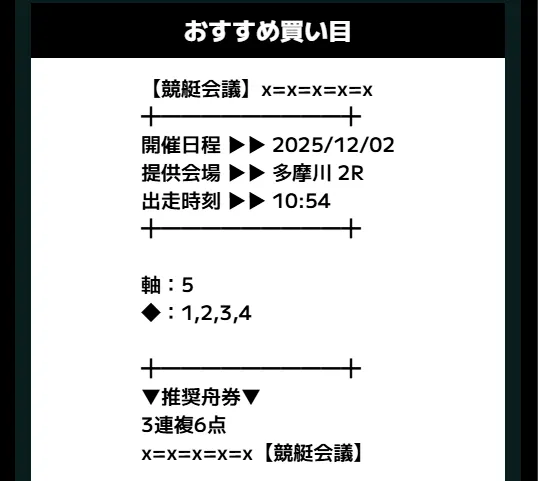 1つの会場に絞って全レースをカバーできる点は便利ですが、1日に12レース分も予想を出すとなると、どうしても精度が安定しにくくなる可能性があります。