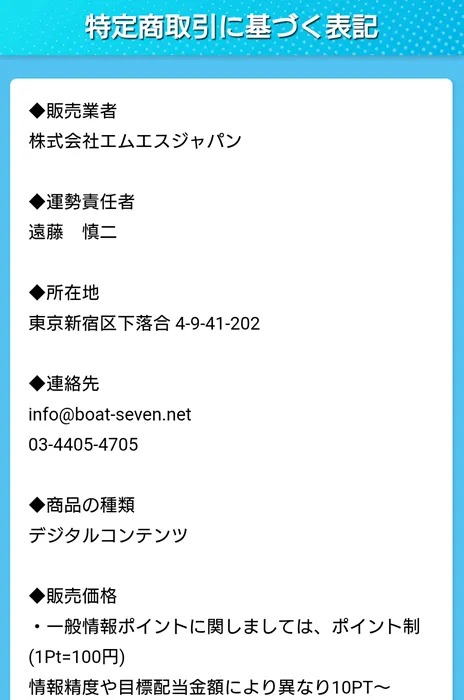 「競艇セブン」は競馬予想サイト?特商法に「競馬開催日」の文字発見!