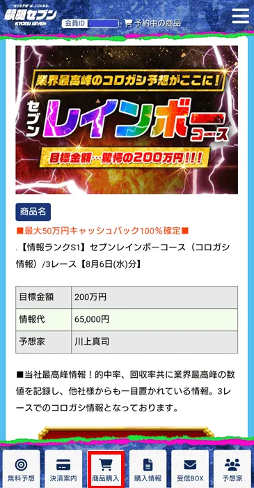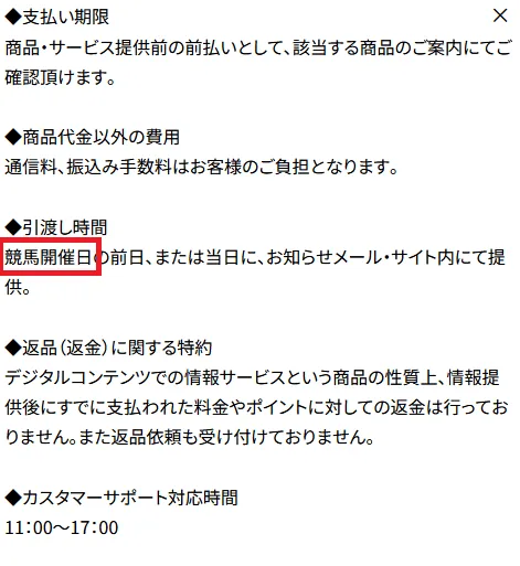 競艇予想サイトでは馴染みのない単語ですが、調べてみると競馬予想サイトでは「商品購入」や「情報購入」などの単語を使うようですね。