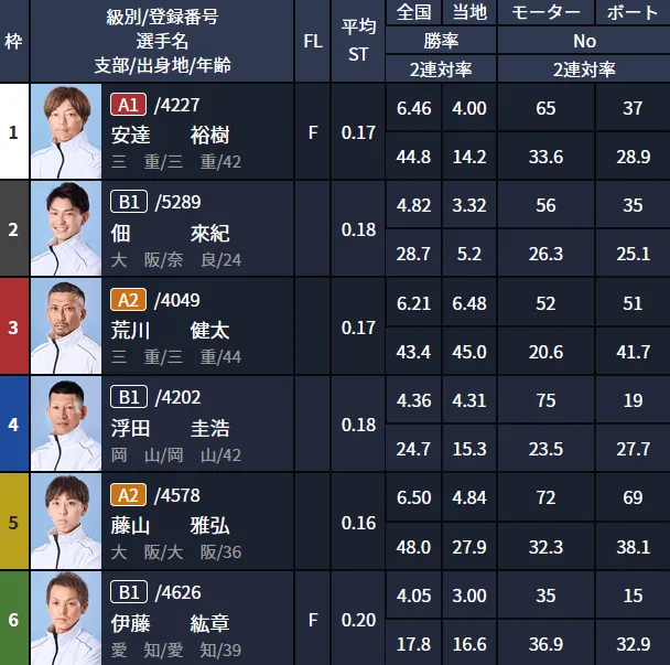 - 1号艇:安達裕樹(A1級・三重)