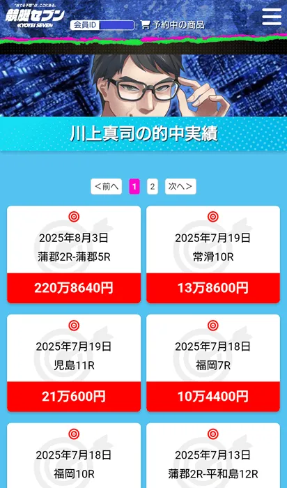 - 無料予想は2レース続けての不的中、有料予想は週替わりで信用できない