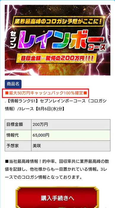 | セブンレインボー | 200万円 | 65,000円 | 3レース |