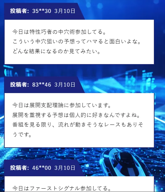一般的な競艇予想サイトであれば、均等買いや1点あたりの金額を明確に提示しているケースが多いため、この点はかなり利用者任せの印象です。