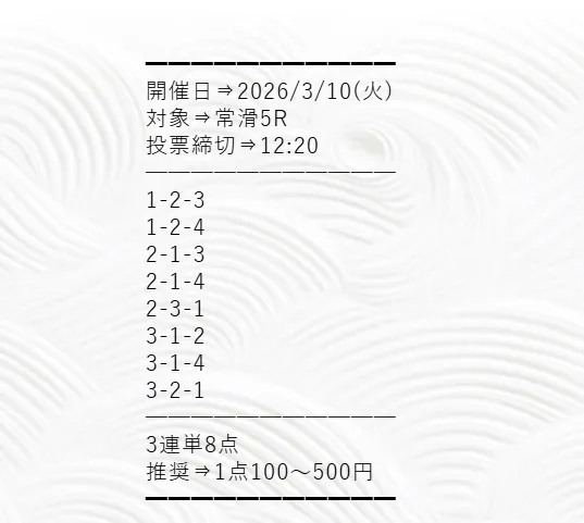 無料予想検証:2026年3月10日常滑5R