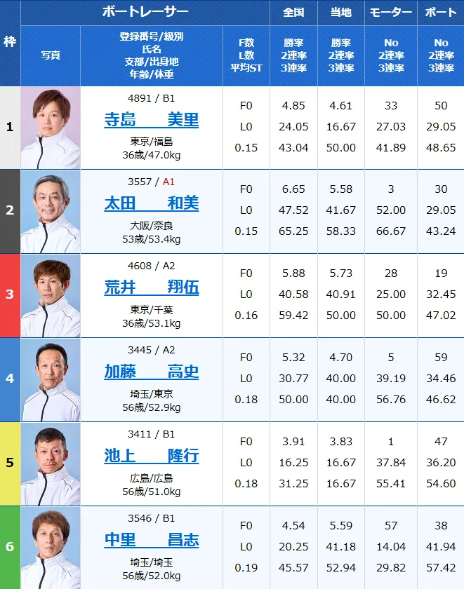 - 1号艇:寺島美里(東京・B1)