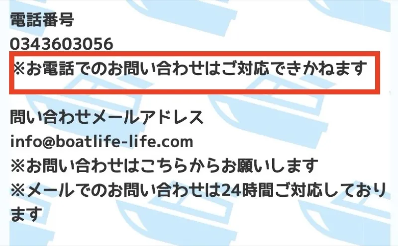 - メールアドレス:info@boatlife-life.com