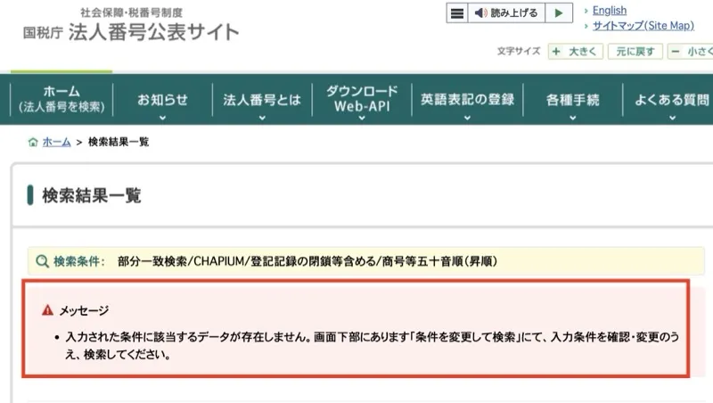 こちらのサイトの運営情報を確認したところ、記載された会社が法人番号公表サイトでは表示されず、なんだか怪しい。