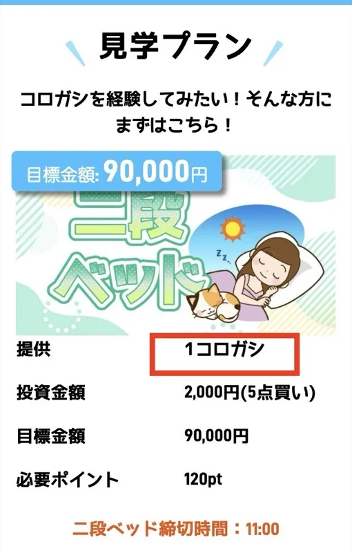 | 記念日 | 1コロガシ | 記載なし | 2200pt | 230万円 |