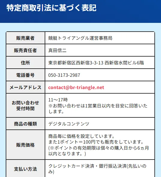 「競艇トライアングル」は予想を直接買うスタイル。クレジットカード(主要5ブランド)と銀行振込に対応している。