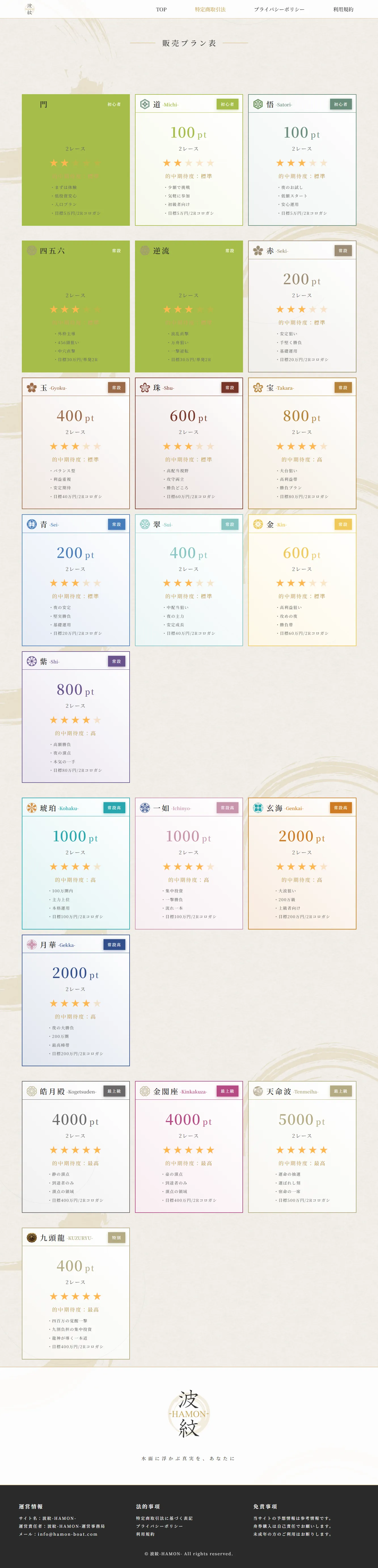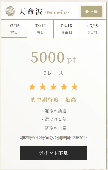| 天命波 | 2レース | 5000pt | デイ | 最上級プラン |