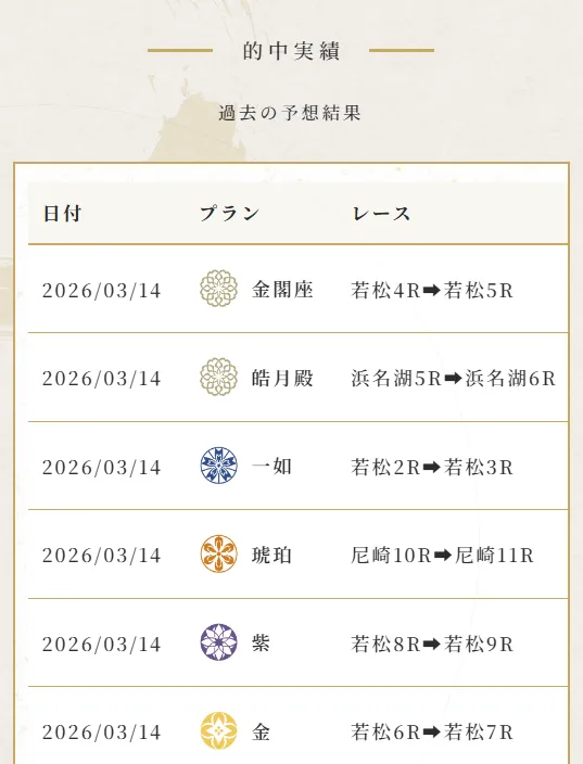 しかし実際のページを見ると、掲載されているのは的中実績のみ。