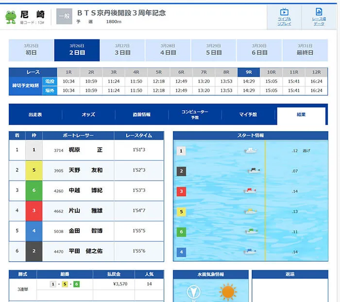 1レース目 尼崎競艇場9R BTS京丹後開設3周年記念