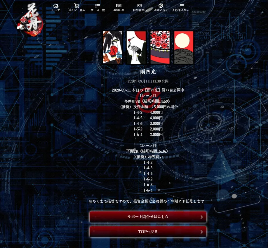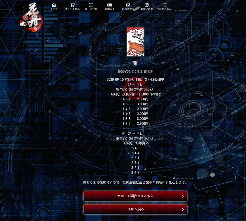 せっかく稼いだこのお金を次にも投資したいですね~。また花舟の有料予想をチェックしてみましょうか。