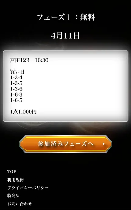 | フェーズ6 | 3連単2レース | 10,000円 | 200万円 | 2,000pt | なし |