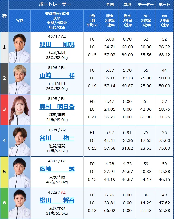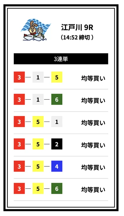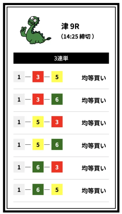 1号艇を軸に、5号艇と6号艇を絡めた予想となっています。