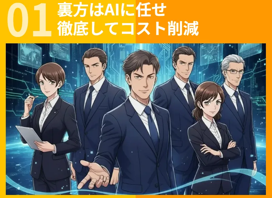 1つ目の強みは「裏方はAIに任せ徹底してコスト削減」